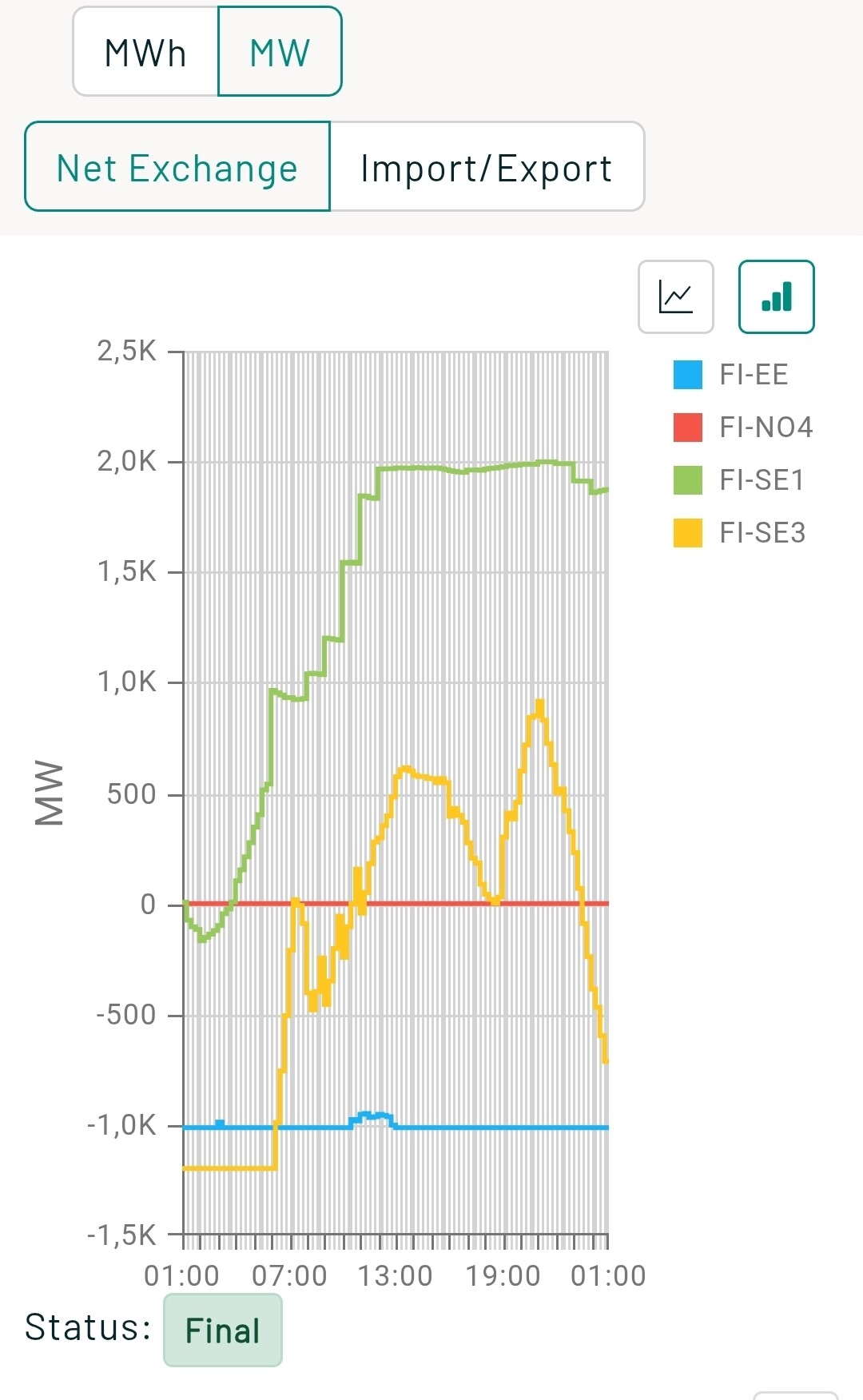 It seems to be in use now, not yet visible on Fingrid’s system status page: