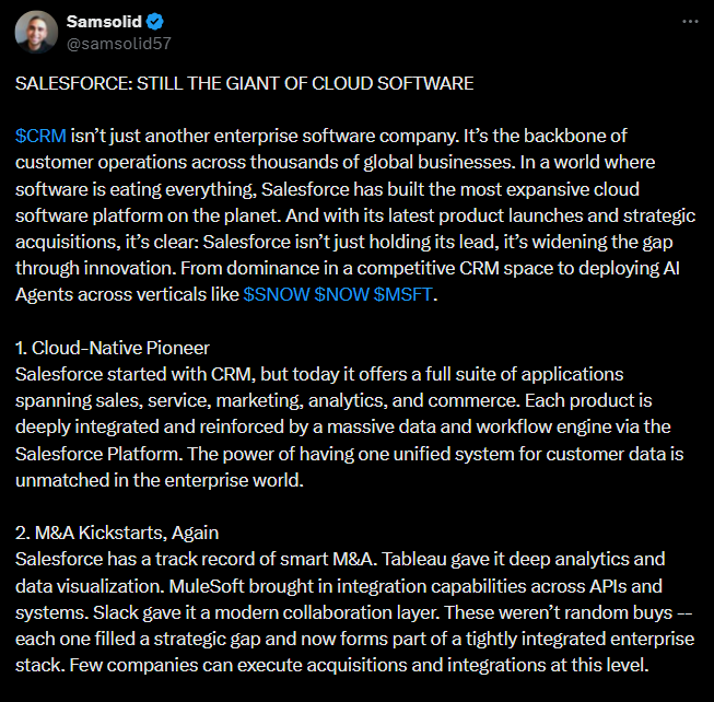 Olisi kiva saada konkreettista ymmärrystä ja näkemystä, minkä takia ajatellaan, että Salesforcen kilpailijat ovat tulossa lähemmäksi Salesforcea. Kuitenkin olen toisaalta ymmärtänyt, että “tuote/alusta” on onnistunut helppokäyttöisyydessään ja joustavuudessaan. Ja mitä ja millaisia ongelmia hallinnossa on ollut, kun vaihtuvuutta on ollut sekä puututtu osakepohjaisiin palkkioihin.