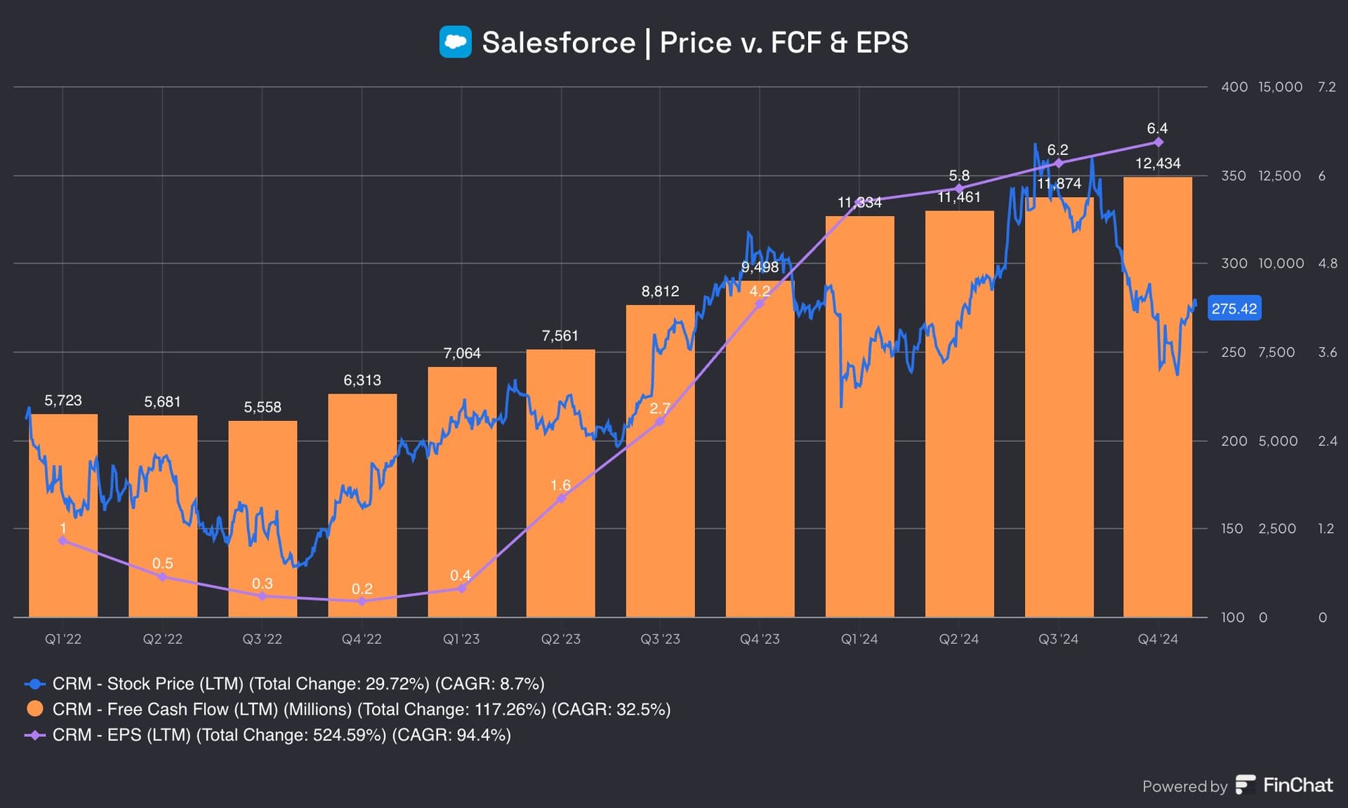 Salesforce on yksi maailman suurimmista ohjelmistoyrityksistä, ja sen asema CRM-markkinoilla on vahva. Viime vuosina yhtiö on kuitenkin kohdannut haasteita ja sen osakkeen arvo on laskenut merkittävästi huippulukemista.