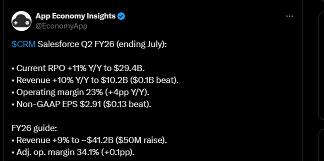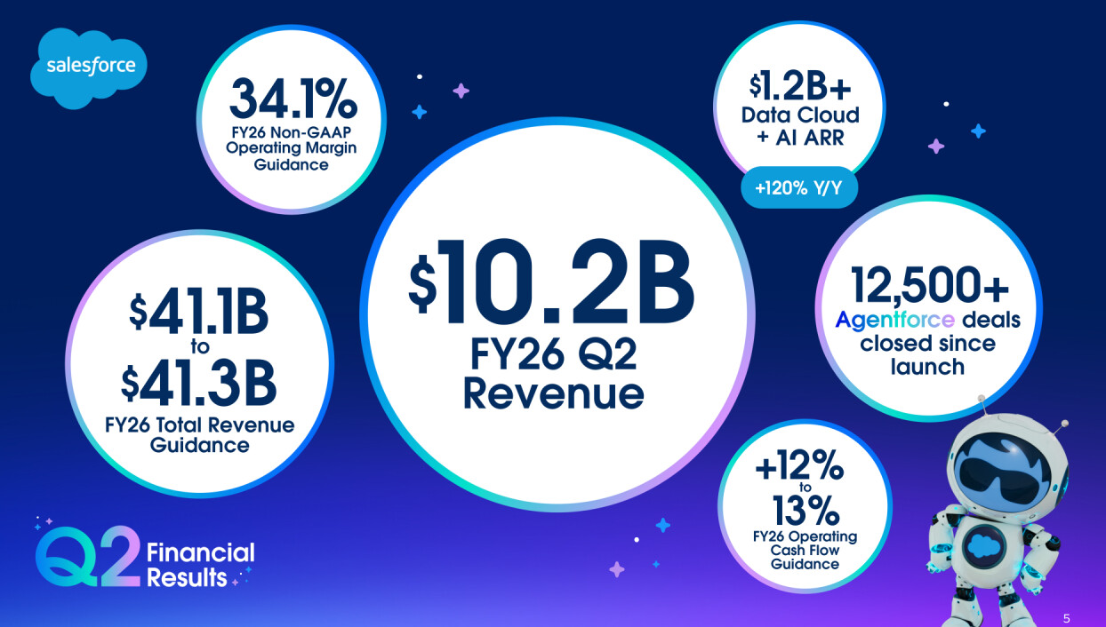 Agentforce (AI-agenttialusta), Einstein Copilot (generatiivinen käyttöliittymä yritysdataan) ja Data Cloud (toimii apuna reaaliaikaiselle AI-analytiikalle) ovat kovasti tekoälyisästi tukemassa yhtiön menoa.