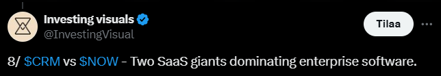 Isot toimijat, kuten Microsoft jättimaisen ekosysteeminsä kanssa ja ServiceNow modernilla otteella. Ja aiemmin mainitun A2A:n tuomat jutut eivät välttämättä mene kuin on ajateltu yleisesti tai/ja Salesforcen osalta.