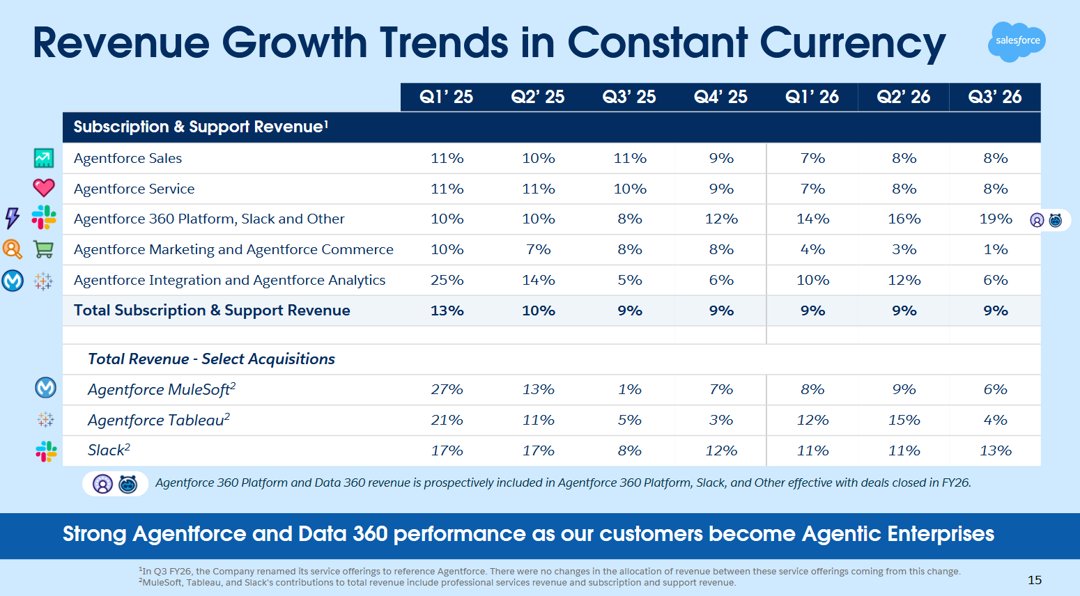 Agentforce ja Data 360 ovat kieltämättä kovassa vedossa, kun katsoo niiden toistuvaa vuosiliikevaihtoa (ARR) , joka on noussut +114 prosenttia vuodessa.