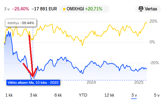 Kolmen vuoden tuotot eivät ole erityisen hyviä. Katson ehkä seuraavan kerran kolmen vuoden tuottoja tämän vuoden lokakuussa. ![]()