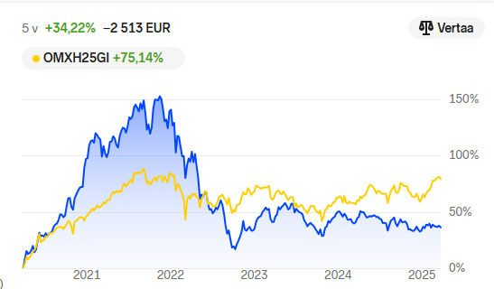 Indeksi on nöyryyttänyt aika hyvin salkkuani viiden vuoden aikana. ![]()