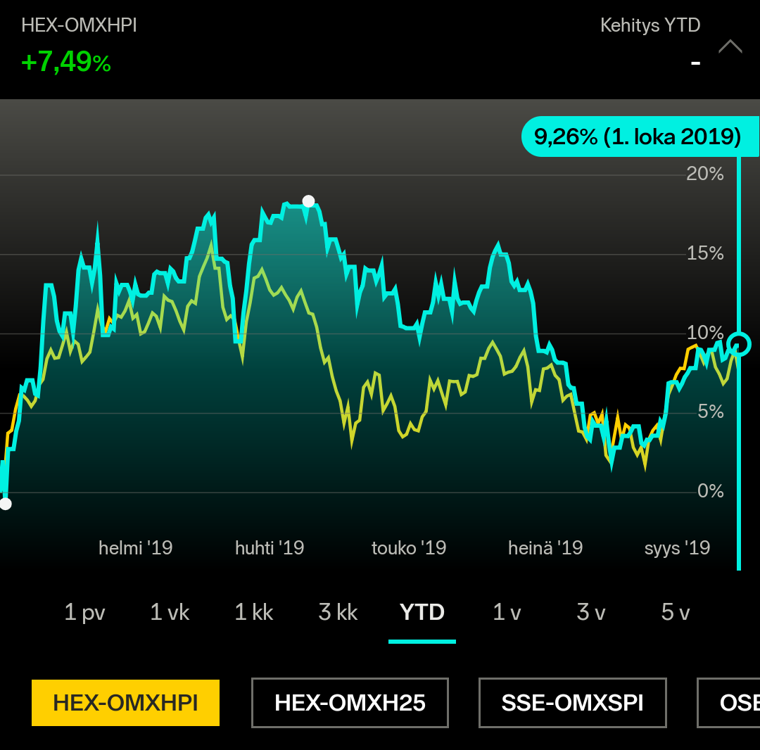 Tässä myös OMXH25GI:n kehitys (samalla tavalla päivän myöhässä):