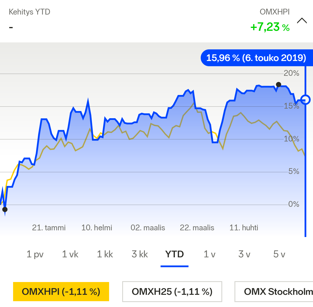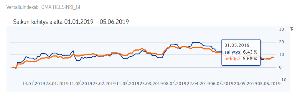 Mukavaa kesäpäivää kaikille foorumilaisille! Lupasin tässä kesäkuun alussa postata Medifilmin salkun kehityksestä tähän ketjuun, ja avaan samalla vähän kuluneella tilikaudella (1.6.2018-31.5.2019) osakemarkkinoiden ja MF:n salkun kehitystä. Vertailuindeksinä käytetään OMXHGI-indeksiä, mutta lopussa verrataan tuottoja OMXH25GI-indeksin tuottoihin, koska sijoitan lähes yksinomaan OMXH25-listan yhtiöihin ![]()