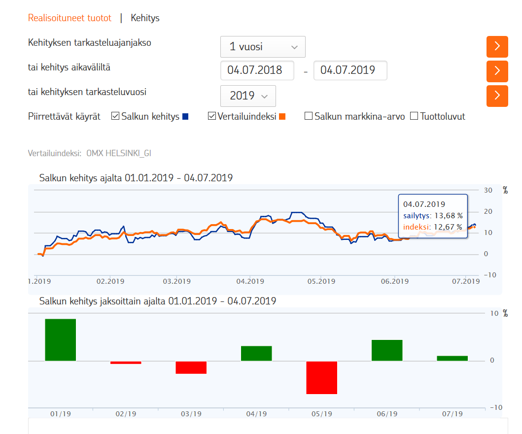 Tuossa on salkun tuottohistoria koko siltä ajalta (eli vajaa 2 vuotta) kun se on pitänyt majaansa nykyisellä välittäjällä.