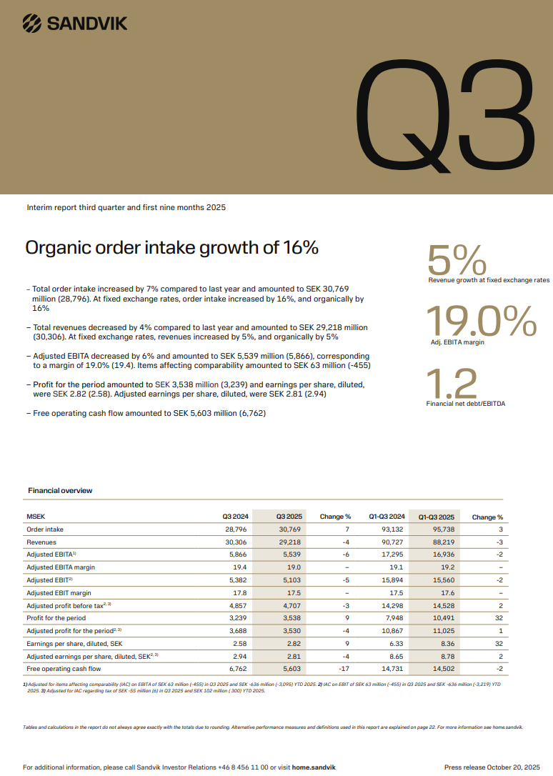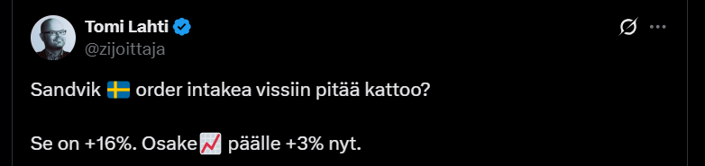 - Vakaa kassavirta ja osinkopolitiikka: Sandvik on tunnettu vakaasta kassavirrastaan ja kohtuullisesta osingonmaksusta, joka houkuttelee pitkäjänteisiä sijoittajia.