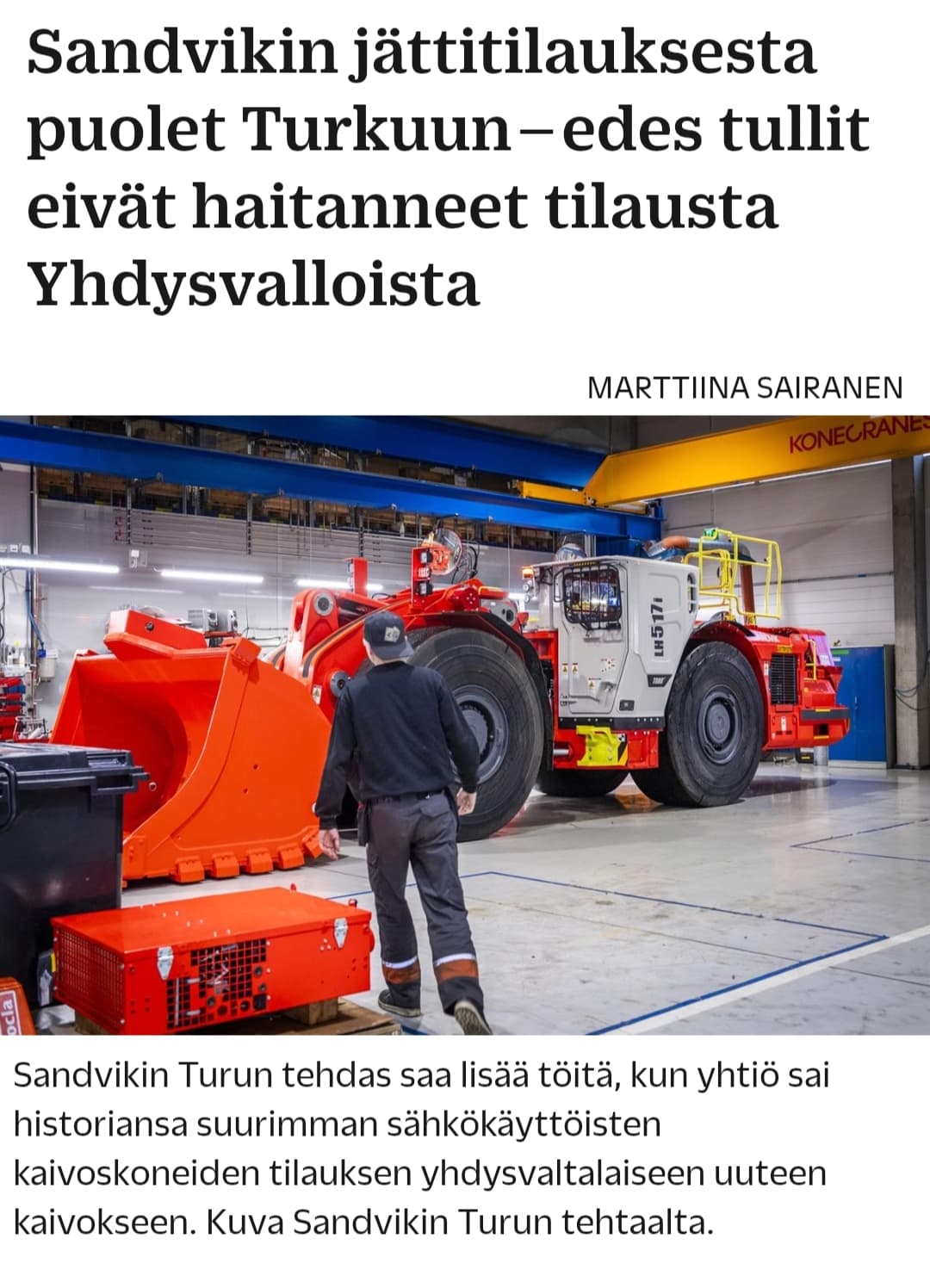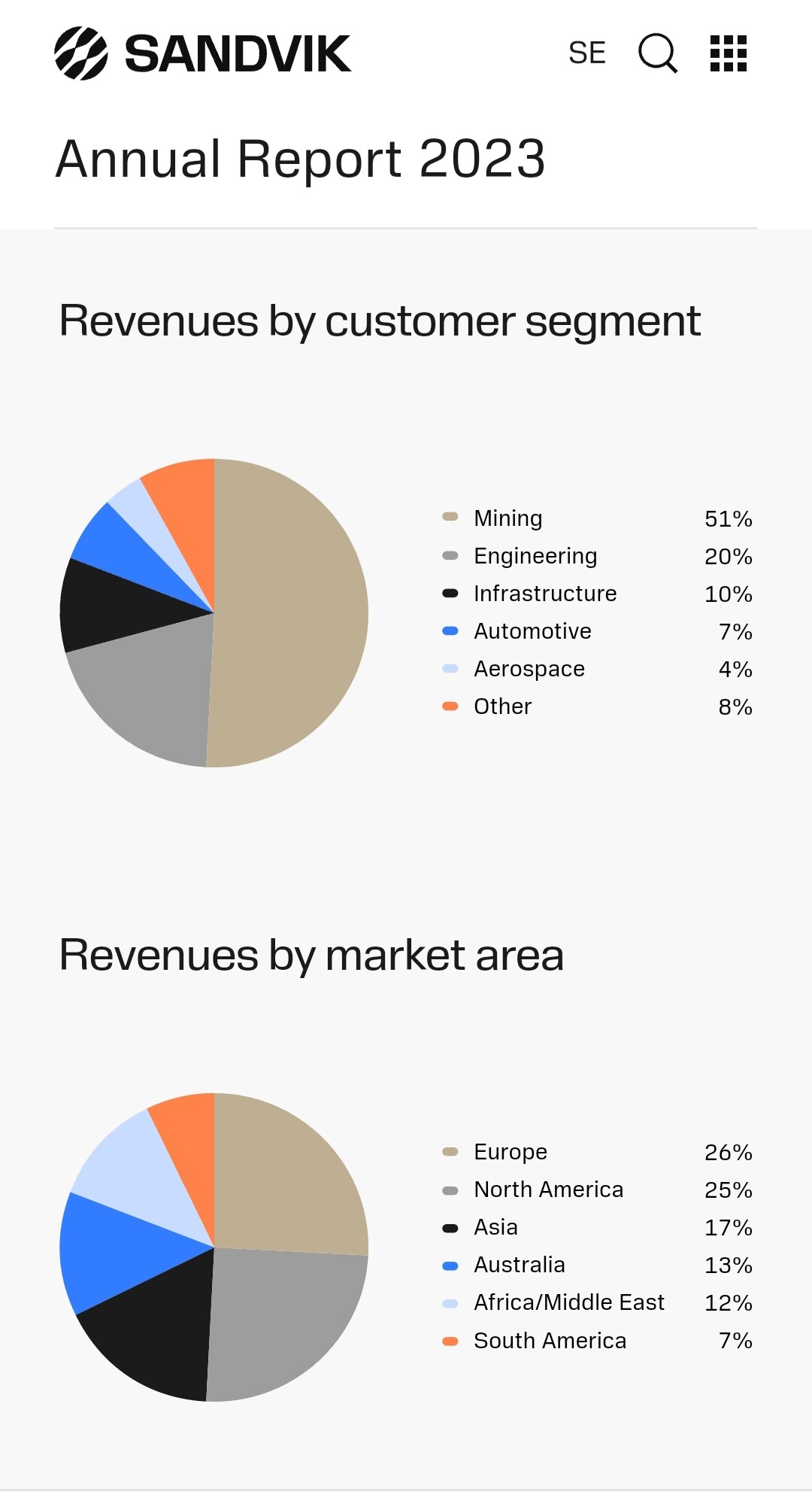- Vahva asema kaivosteollisuudessa: Kaivosala on tärkeä osa Sandvikin liiketoimintaa, ja yritys hyötyy merkittävästi alan kasvutrendeistä, kuten elektroniikan ja akkuteknologian raaka-ainetarpeen lisääntymisestä.