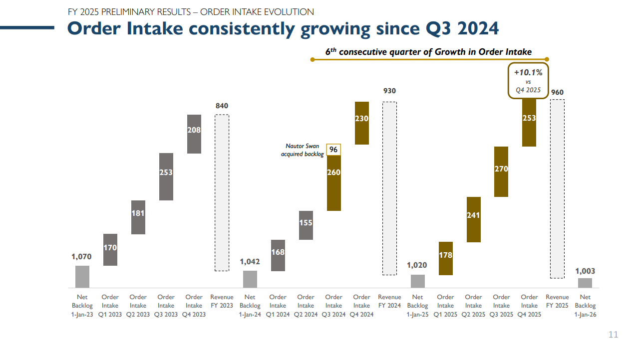 I tried to find out if it’s due to market weakness or a company-specific reason. I found press releases from another luxury yacht listed company, The Italian Sea Group, which provided good comparative material on the order book. It thus seems that the issue is more about market cooling than an internal problem for Sanlorenzo. This is a good situation in itself, because in the market, everyone suffers together.