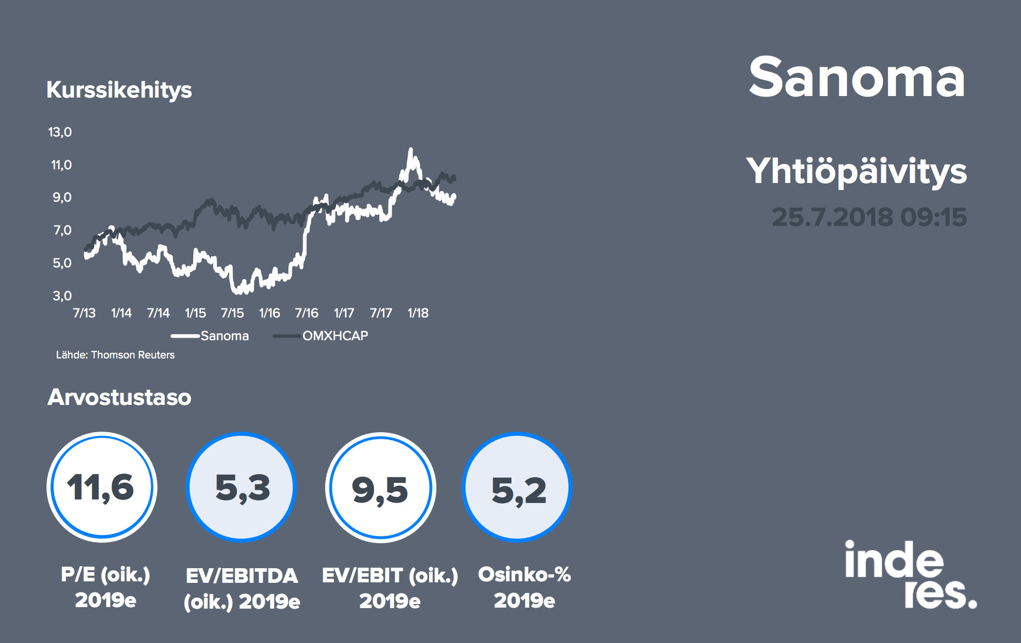 Ei tuo ainakaan Ahon ennusteiden pohjalta kalliilta näytä ensi vuoteen (2019e) katsoen. Missä oman näkemyksenne mukaan Sanoma on 3 tai 4 vuoden päästä?