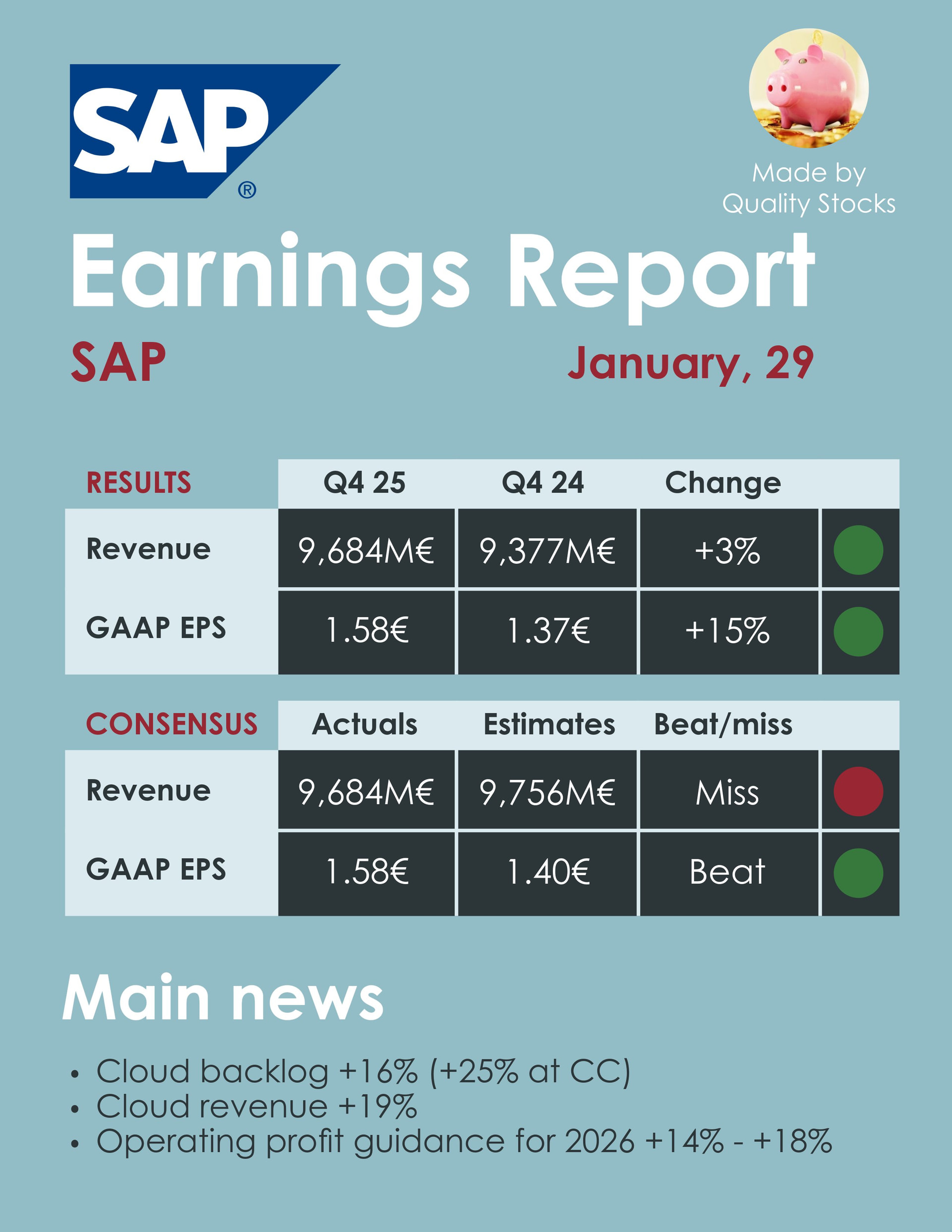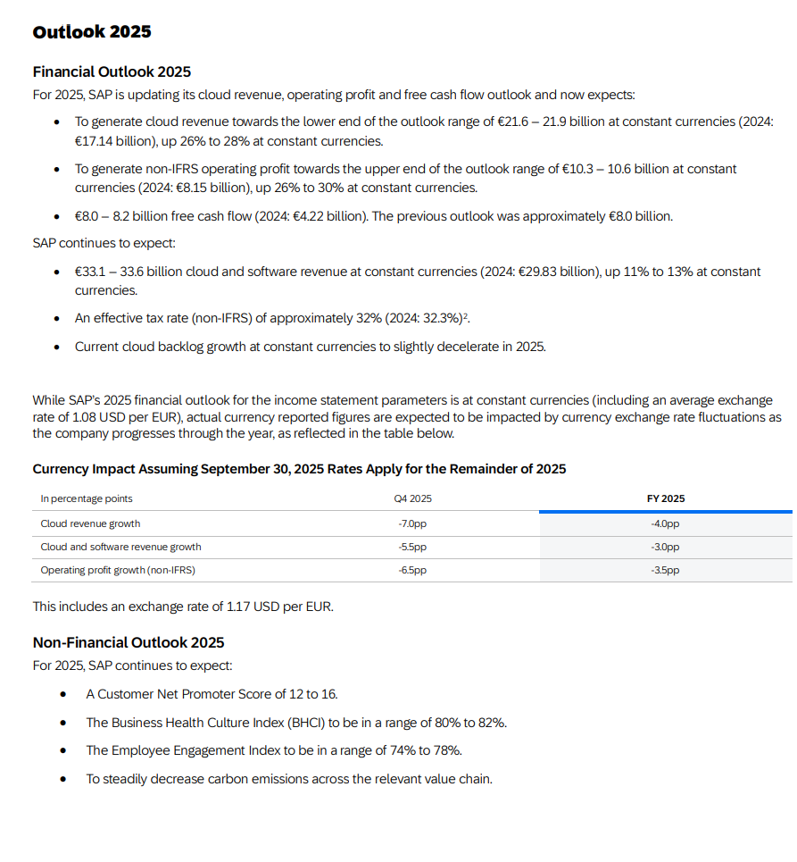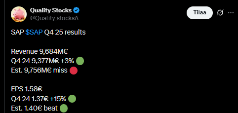 Pilvipalvelujen tilauskanta pysyy silti vahvana ja tekoälyn hyödyntäminen alkaa näkyä tehokkuudessa. SAP näyttää sopeutuvan talouden vastatuuliin kurinalaisesti - painottaen kannattavuutta kasvun kustannuksella, mikä sopii todennäköisesti tähän epävarmaan markkinatilanteeseen.