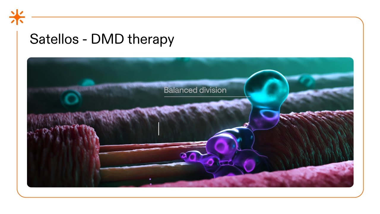 Lähestymistapamme pohjautuu Satellosin toisen perustajan, Michael Rudnickin, uraauurtavaan tutkimukseen. Hän havaitsi, että dystrofiini ei vain ylläpidä lihassolujen eheyttä, vaan toimii myös signaalimolekyylinä, joka käynnistää lihasten kantasolujen epäsymmetrisen solunjakautumisen. Tämä prosessi on elintärkeä lihasten uusiutumiselle: jokaisessa epäsymmetrisessä jakautumisessa syntyy sekä uusi kantasolu että lihasprogenitorisolu. Ilman dystrofiinin signaalia näitä jakautumisia ei tapahdu riittävästi, mikä johtaa progenitorisolujen puutteeseen ja etenevään lihasheikkouteen. Tämä havainto muutti DMD:n käsitystä: kyse onkin epäonnistuneesta lihasuusiutumisesta, ja ohjasi meidät keskittymään kehon luonnollisen lihasuusiutumiskyvyn palauttamiseen.