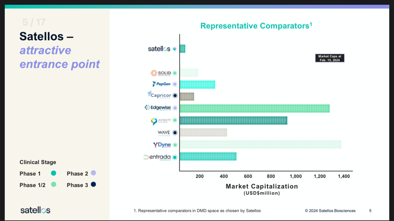 “Satellos is taking an entirely novel approach to the treatment of Duchenne by focusing on stimulating muscle regeneration as opposed to slowing muscle degeneration. While Sarepta and others focus on muscle fiber and dystrophin production, Satellos targets muscle stem cells and reinstates their ability to produce new muscle.”