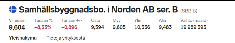 En omista, mutta on kyllä muidenkin kuin 250 000 osakkeenomistajan kannalta mielenkiintoista nähdä, kääntyykö laiva oikeaan suuntaan. Ruotsin kiinteistösektori tuntuu olevan harvinaisen epävarman tilanteen keskellä.