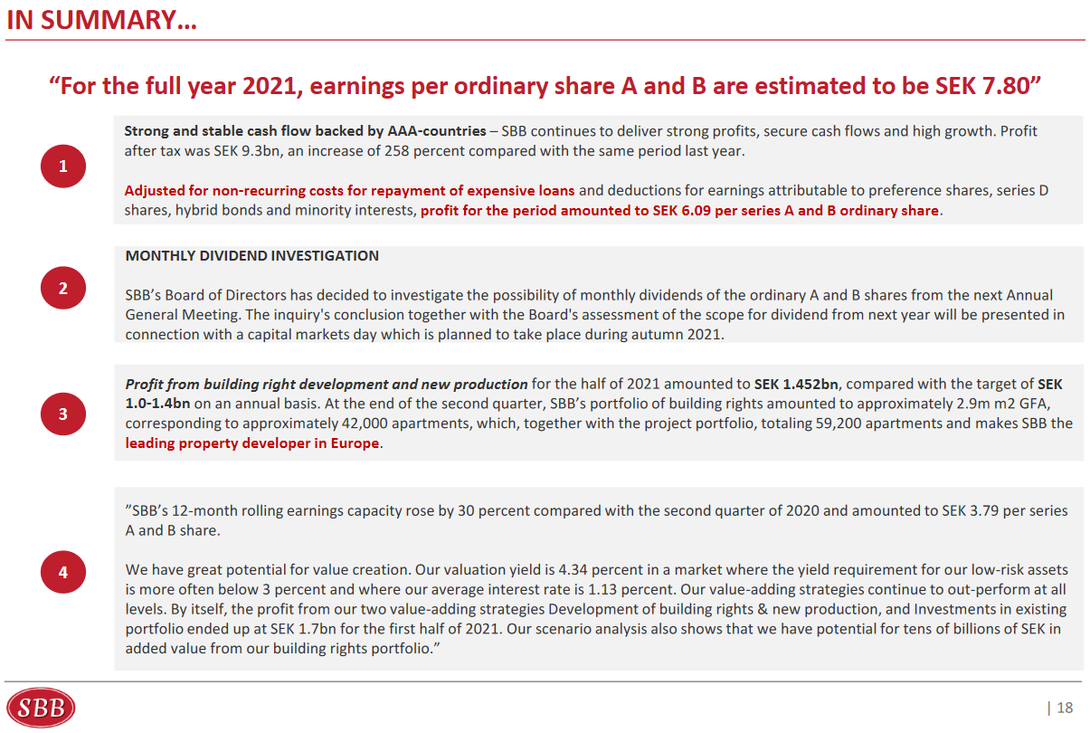 The Board of Directors also has the ambition to propose a dividend of SEK 1.32 per ordinary share A and B, divided into twelve monthly dividends, to the Annual General Meeting 2022.