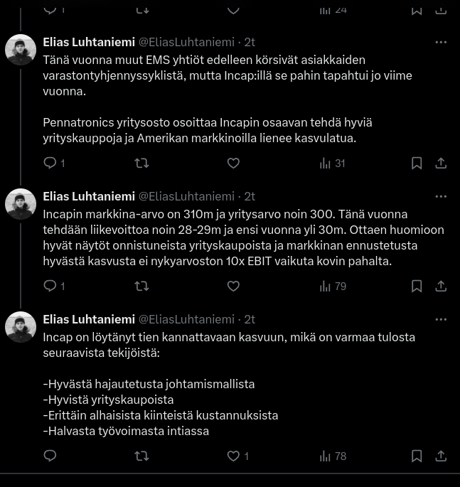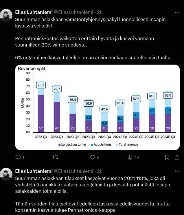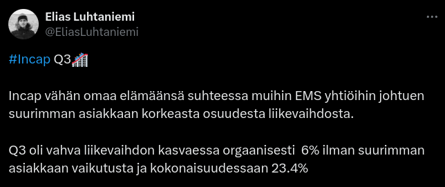 Lopuksi, tiimimme on osoittanut vahvaa sitoutumista strategian toteuttamiseen ja tavoitteiden saavuttamiseen haastavassa markkinatilanteessa. Rakennamme vahvuuttamme parantamalla tehokkuutta, uusilla asiakassopimuksilla sekä yritysjärjestelyillä.”