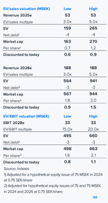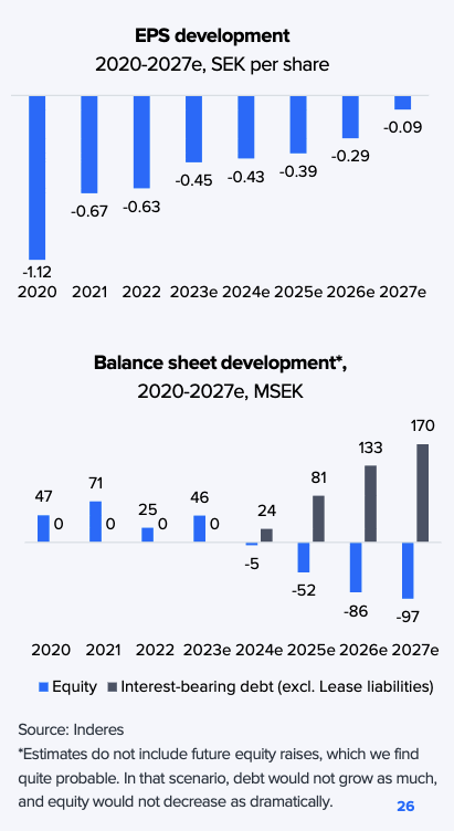 Tarinassa on paljon houkuttelevia elementtejä ja kasvun onnistumiseen on mielestämme hyviä syitä uskoa. Aikataulu on kuitenkin epävarma ja osin yhtiön hallinnan ulkopuolella (vakuutuskattavuus ja asiakkaiden nopeus ottaa uutta teknologiaa käyttöön), ja muutokset kasvun kulmakertoimessa vaikuttavat olennaisesti siihen, miten paljon yhtiön täytyy kerätä lisää rahoitusta ja millaisella diluutiolla tämä tapahtuu.