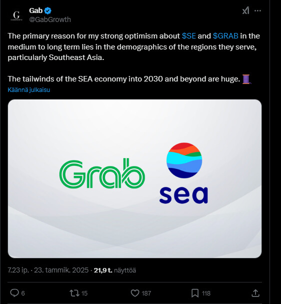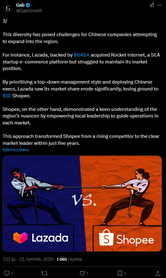 -E-commerce giant in Southeast Asia and Taiwan. E-commerce trends in Southeast Asia are very promising:
