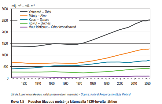 In relation to this, I once came across an article that stuck with me: https://suomenluonto.fi/artikkelit/onko-suomessa-metsaa-enemman-kuin-koskaan/ Immature trees have always been harvested. The link states, “In the mid-19th century, the growing age of sawlogs was generally assumed to be 140–200 years, and an age of about 150 years was commonly used as a criterion for sawlogs.” or “For example, the Finnish Economic Society stated in its 1845 opinion that the growth of a pine tree to full maturity takes 180–200 years in Finnish conditions, but it is suitable for construction timber as early as 140–150 years of age. Metsähallitus, for its part, stated in a report given through the 1874 forest committee that a 110-year-old trunk was still considered small-diameter wood, and only 160-year-old logs were starting to be full-sized, ‘mature’ timber.”