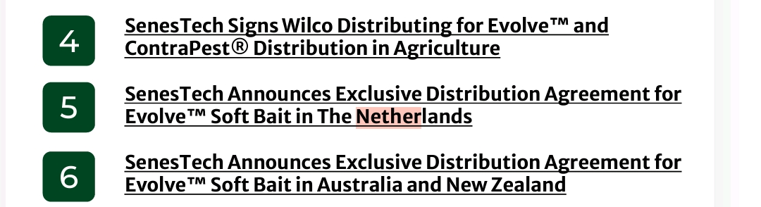 “SenesTech, Inc. (NASDAQ: SNES), a leader in innovative pest control solutions, is pleased to announce that the City of Baltimore has begun integrating Evolve™, SenesTech’s cutting-edge rodent birth control product, into the city’s rodent management programs. This marks a pivotal step in Baltimore’s efforts to address its significant rodent population, a challenge highlighted by a recent ranking of Baltimore as one of America’s “rattiest cities.” The city has placed a substantial initial order for Evolve and plans to deploy the product this quarter as part of its integrated pest management (IPM) strategy.”