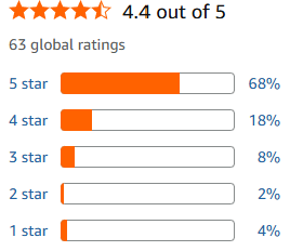 Laitetaas taas Amazon arvostelupäivityksiä. Arvostelujen määrä oli noussut kuukaudessa 54:stä 63:een ja muutama kommentti tullut lisää.