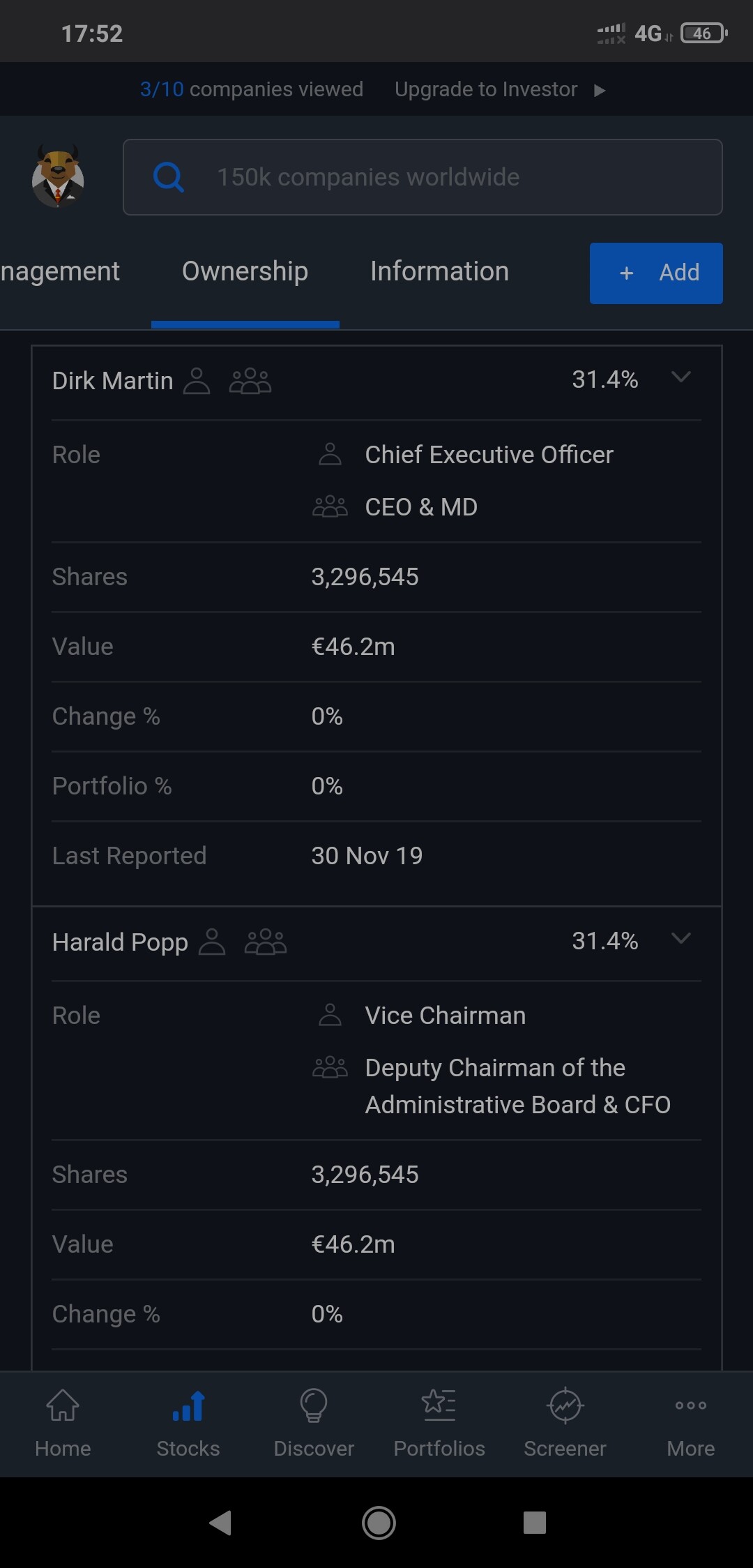 Yleensä sijoittajat valittavat että johto ei omista tarpeeksi yhtiön osakkeita. Serviceware on sieltä toisesta ääripäästä missä johto omistaa jopa liiankin paljon osakkeita