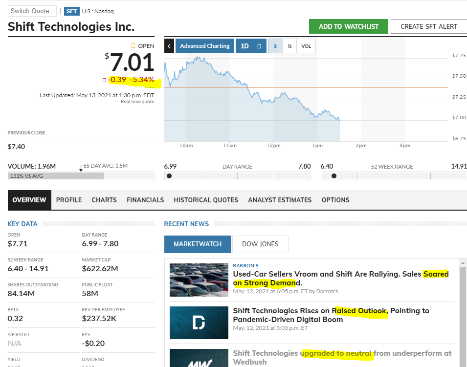 Avataan ketju tästä. Mielenkiintoinen kasvuyritys kyseessä, mihin törmäsin eräällä YouTube kanavalla. Shift Technologies on online autokauppa mikä listautui viime vuonna ja keräsi rahoitusta n.300m$ SPAC järjestelyllä.