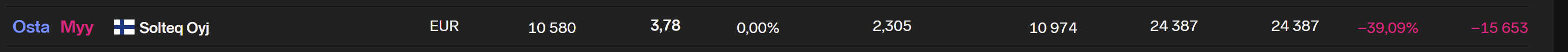 Return on equity (ROE) = nettotulos (12kk) / keskimääräinen oma pääoma.