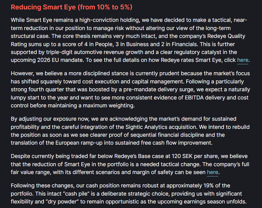 Interessant nok vil RE’s top picks reducere SEYE med halvdelen i dag. DMS-kravet er snart på vej, aktien handler til ~50SEK+ mod et basismål på 120SEK, og alligevel sælges halvdelen. Det er en anden type handel her end i Inderes’ modelportefølje.