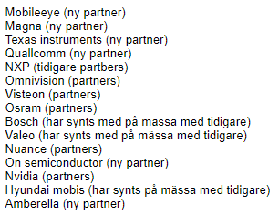 Suosittelen katsomaan listaa CES2019 kumppaneista (SmartEye). On siellä Qualcommia ja Nvidiaa ja monia muita mukavia mukana ollut…