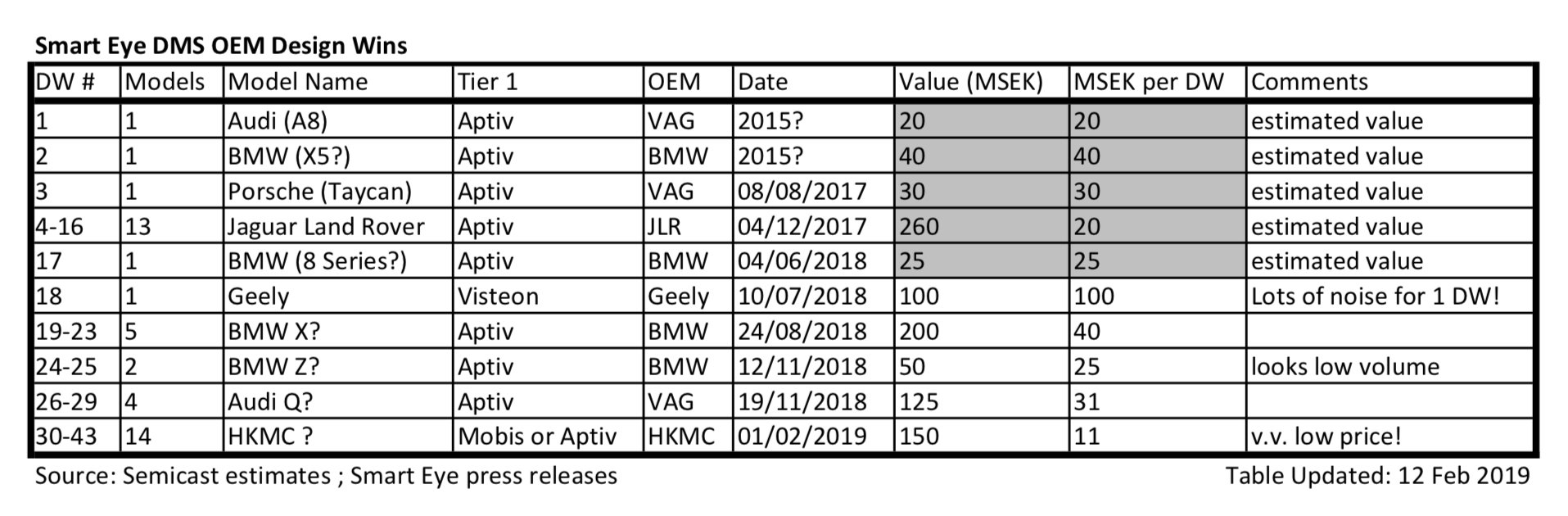 Technically, what you are saying does not contradict with SEYE has said. However I’m finding it very hard to swallow that JLR would go from SEE in 2015 to SEYE in 2017 only to drop the DMS (and thus lose DMS until 2024) because the performance wasn’t what they expected. I would think a bad DMS is better than no DMS while the industry is actively making it a standard feature.