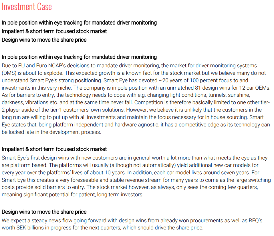 “Now that all smoke has cleared, we find it unlikely that the market leader of DMS would be a company where insiders still only hold about 0.5% of total shares outstanding, as in the case of main competitor Seeing Machines.”