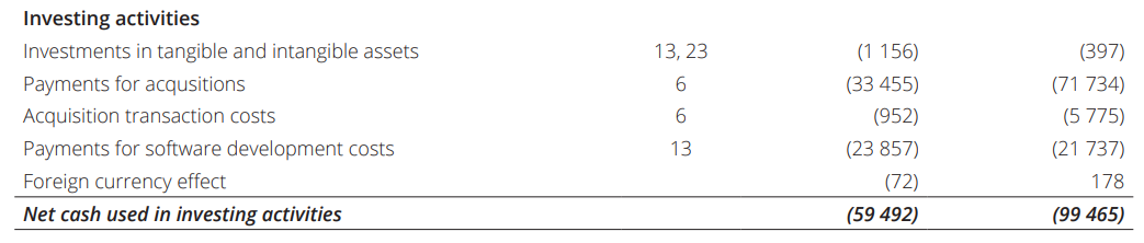 Käyn läpi vuosikertomusta 2022 ja rahavirtalaskelmasta investointien joukosta löytyy