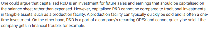 Tähän liittyen Redeyen tuoreessa SaaS-raportissa oli hyvä tunnusluku (EBITDA-CAPEX), jolla helpompi saada eri softayhtiöiden kannattavuudet vertailukelpoisiksi. Osa kun tosiaan aktivoi tuotekehitystä taseeseen voimakkaasti ja osa ei välttämättä ollenkaan.
