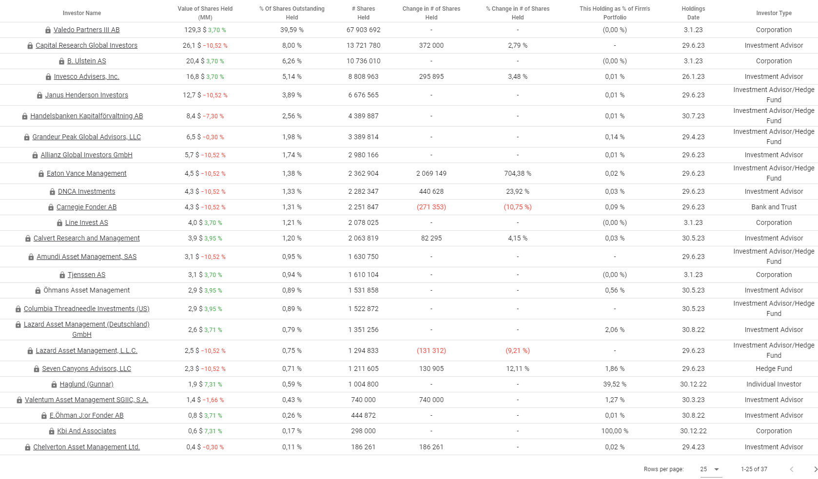 Tossa vielä top-25 omistajat ja omistuksen muutoksia viimeisten kuukausien aikana. Carnegieta lukuunottamatta suurimmat omistajat tehneet pieniä lisäyksiä.