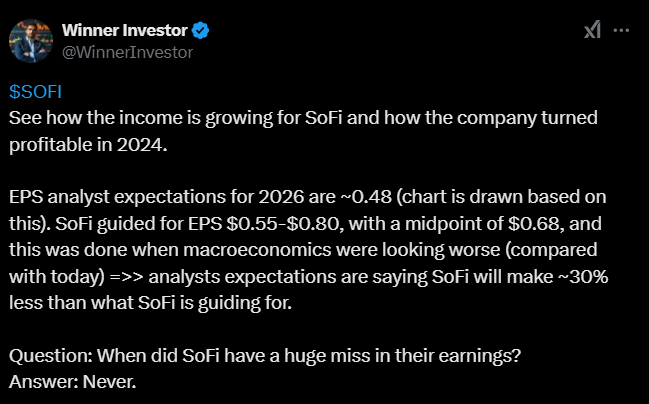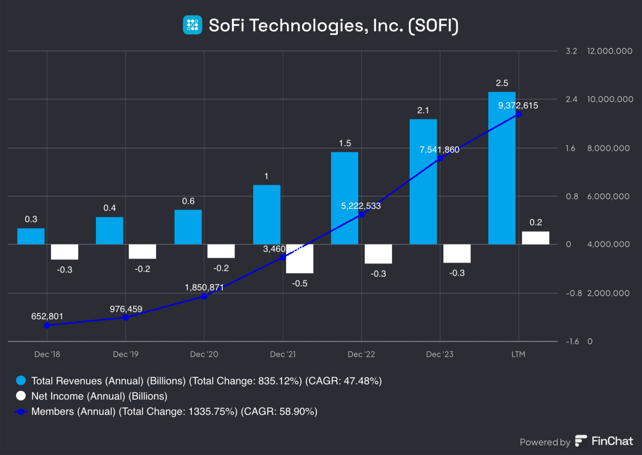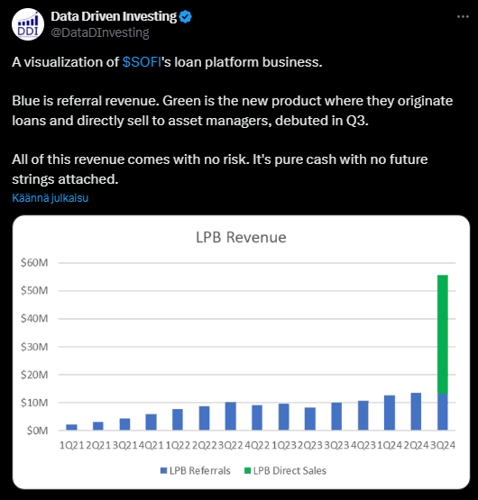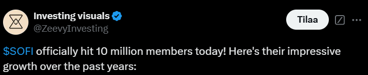 Ei toki ihmeellistä uutta, mutta tässä tviitissä kerrotaan, miten SoFi on kasvattanut tulojaan ja kääntynyt voitolliseksi viime vuonna.