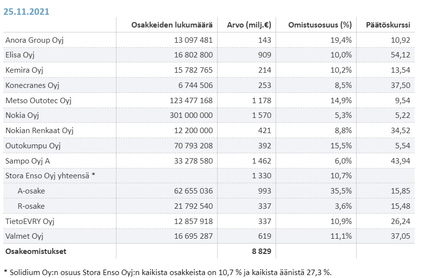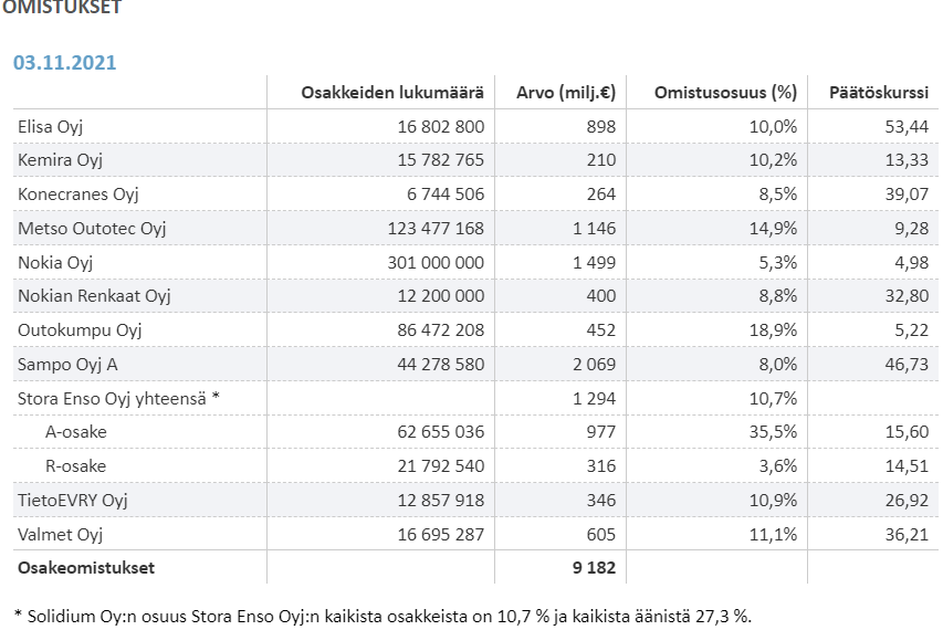 I noticed that a search didn’t find any thread for Solidium, which nevertheless manages the majority of the state’s significant shareholdings.