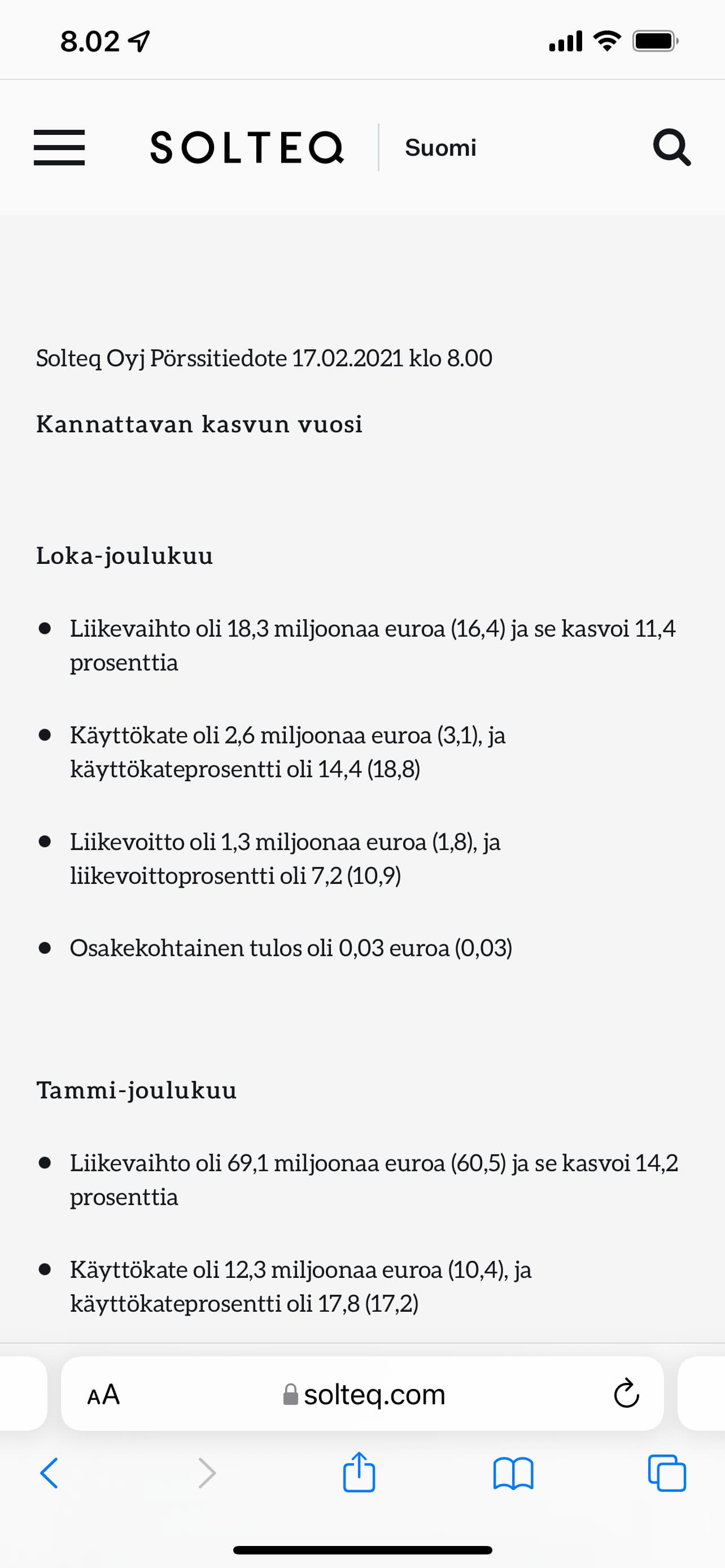 Olli Väätäinen siis siirtynyt Solteqista tjksi SC Softwarelle, jossa toiminut hallituksen puheenjohtajana jo 8 vuotta. Vielä ei ole myynyt loppuja osakkeitaan Solteqista ainakaan 31.1.2022 päivitetyn omistajalistauksen mukaan. Mielenkiinnolla odotan uuden toimitusjohtajan nimitystä.