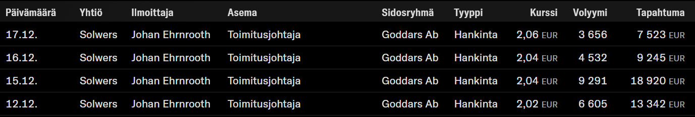 Tässä on Ollin kommentit Solwersin toisesta uudesta yrityskaupasta. ![]()