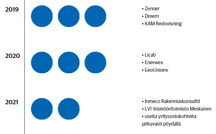 Tällä viikolla Solwers kertoi ostaneensa LVI-Insinööritoimisto Meskanen Oy :n Oulusta. Maaliskuussa se osti projektinjohtoon erikoistuneen Inmeco Oy :n Jyväskylästä.