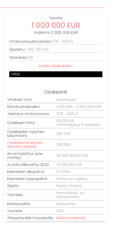 Kyllä, toki pitää huomioida listaamattoman yrityksen olematon mahdollisuus kaupankäyntiin. Pääomat on käytännössä kiinni yrityksessä ilman exit -mahdollisuutta. Tuolloin 2019 hinnoittelu oli edullinen, jonka takia lähdin itsekin mukaan parin aiemman huonon Invesdor-kokemuksen jälkeen - tai niistä huolimatta. Ja tässä tapauksessa oli listautuminen nähtävissä lähitulevaisuudessa jo tuolloin. Tuli kuitenkin nopeammin kuin oletin.