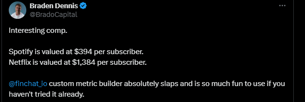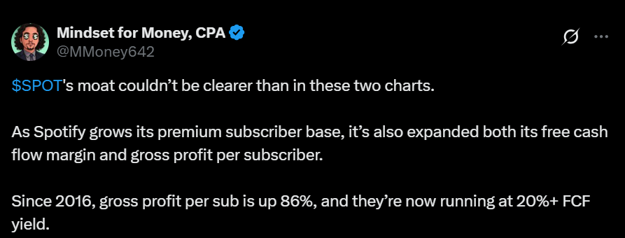 According to the tweeter, Spotify’s competitive advantage is clearly visible in the fact that as paying subscribers grow, cash flow and margin per subscriber have also increased.