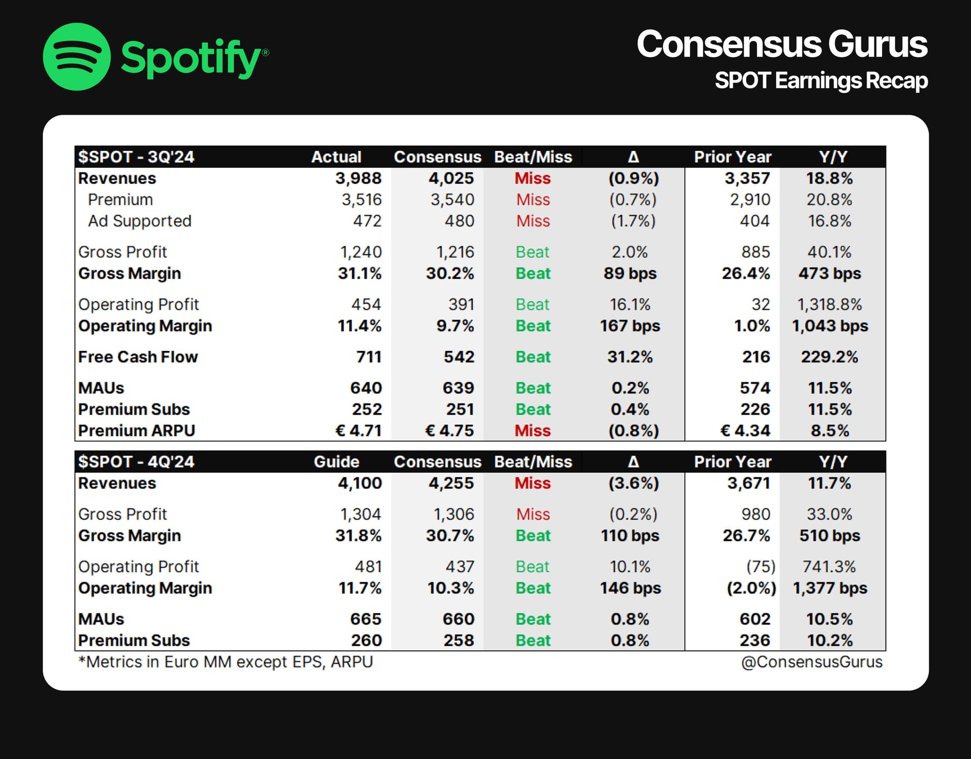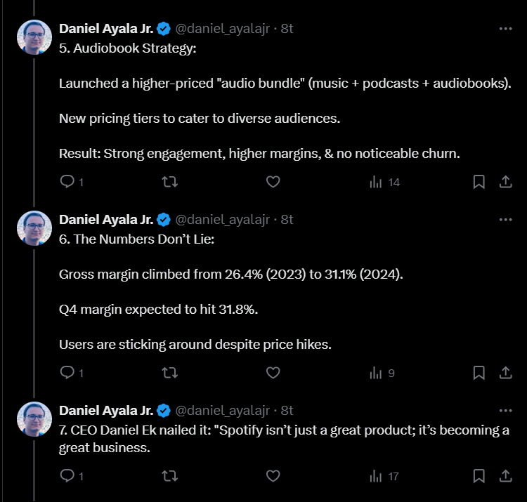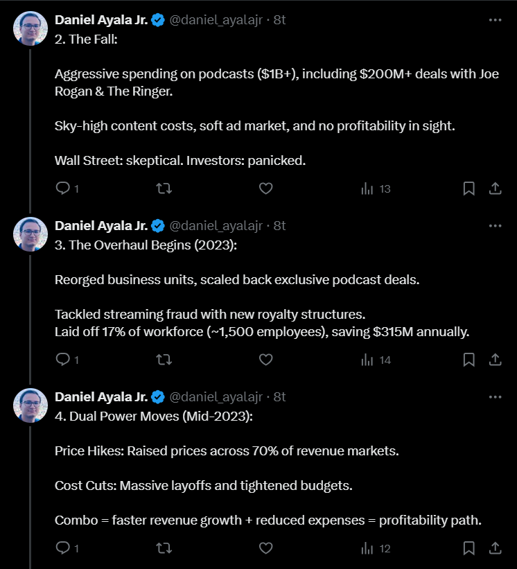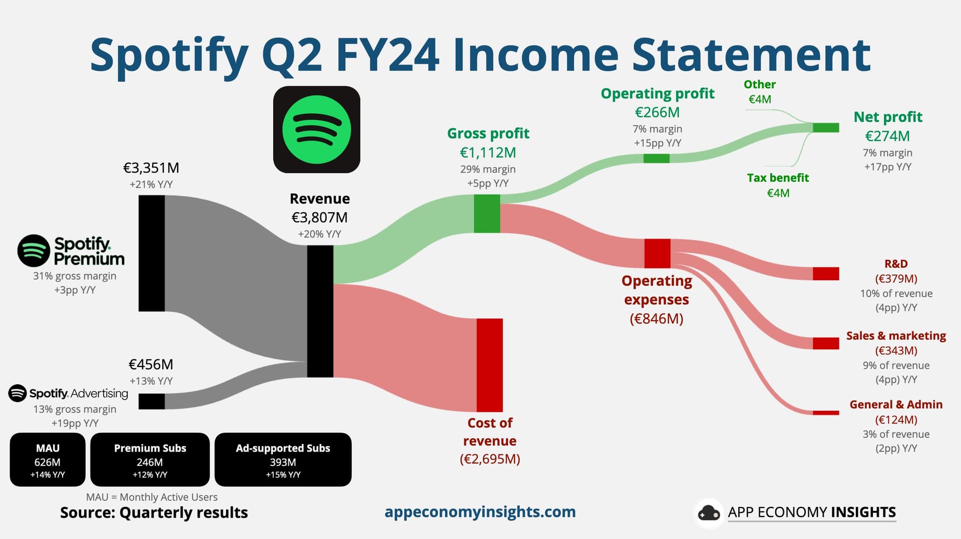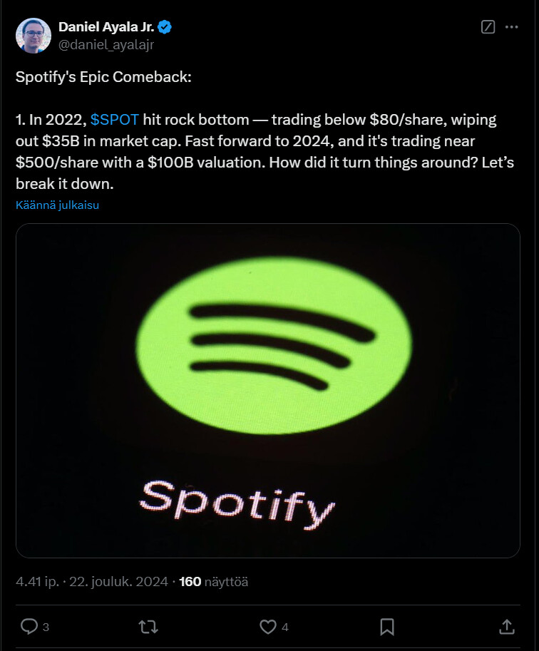 Onnistumiset luvuissa johtuvat mm. siitä, miten Spotify on onnistunut viime vuoden aikana tehokkaasti vähentämään kuluja parantaakseen kannattavuutta. Lisäksi yhtiö on nostanut kuukausimaksuja toisen kerran vuodessa.
