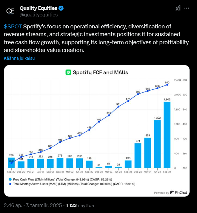 Spotify on valtava toimija musiikin ja podcastien suoratoiston maailmassa. Yhtiö on onnistunut kasvamaan jatkuvasti ja se pystyy tarjoamaan laajan tarjonnan ympäri maailman.
