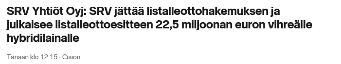 Tuomas Kokkila has sold just under 10k shares. SRV’s shares are apparently traded elsewhere than in Helsinki: