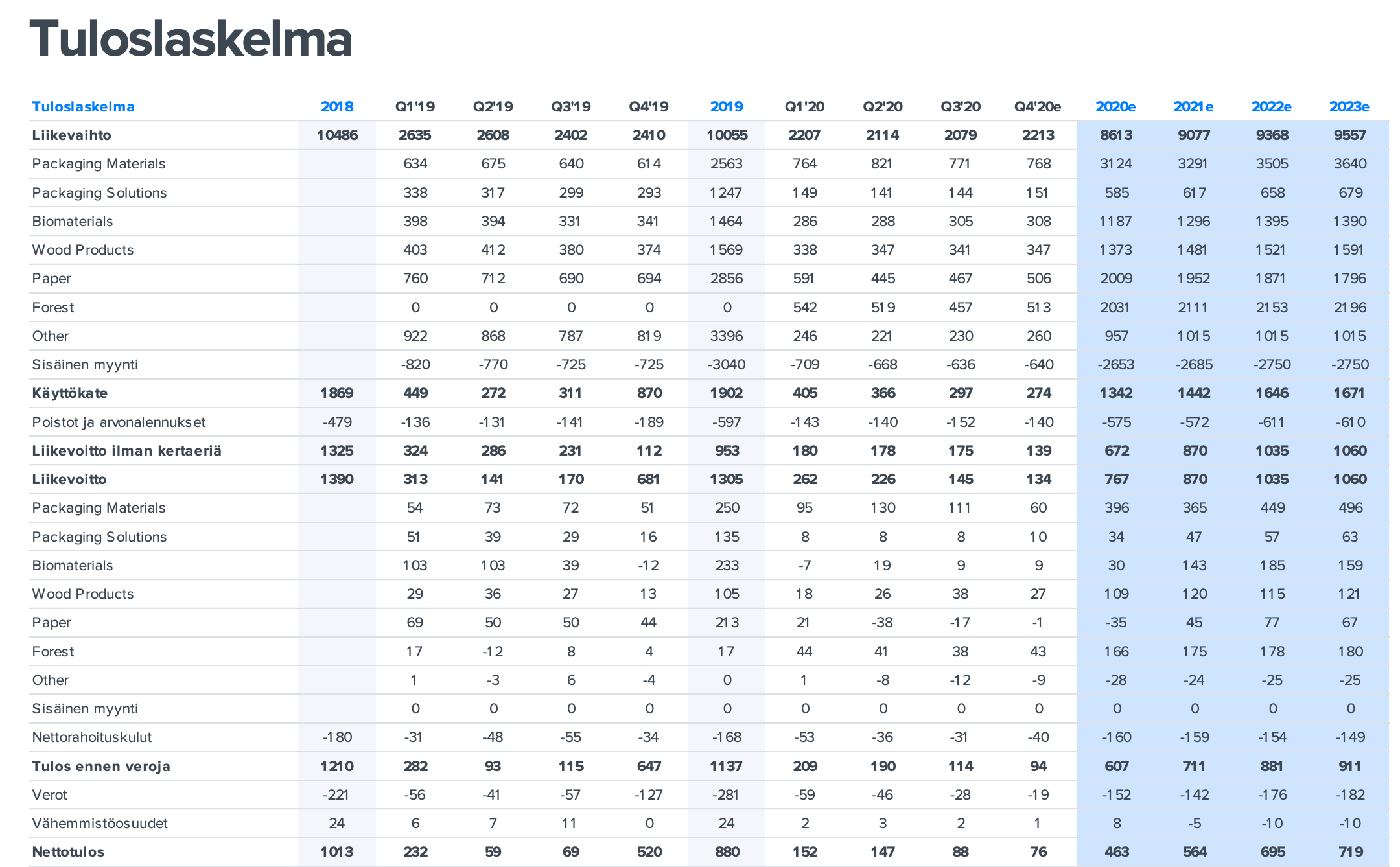 A: The estimates are based on comprehensive strategy work carried out within the company during 2020. We focus on leading positions and accelerating growth in the Packaging Materials and Packaging Solutions divisions, as well as in Building Solutions and Biomaterials innovations. Our new long-term ROCE target is >13% excluding the Forest division. The profitability levels of the three focus areas mentioned above are high, and by growing in these businesses, it is possible to achieve the Group’s operational return on capital employed (ROCE) target.