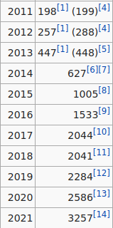 Tuulivoimaenergian tuotannon vaihtelevaa luonnetta emme voi muuttaa, mutta sen merkitys kasvaa erittäin nopeasti. Ohessa kehitys viimeisen kymmenen vuoden osalta (Vuosi / Koko tuulivoimakapasiteetti MW) →