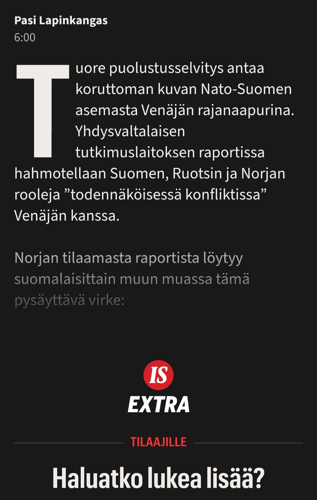 Eli NATO vs Venäjä sodassa meidän kimppuumme voitaisiin käydä. En olisi uskonut