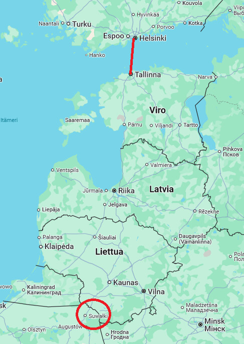 Suwalkin käytävä on ainoa maayhteys baltian maihin. Niiden eristäminen on tärkeää Venäjälle. Jos Suwalkin käytävä on miehitetty ja Puola ei ole valmis / halukas käyttämään voimaa Venäläisiä joukkoja vastaan, tunneliyhteys Suomesta olisi tehokkain ja nopein tapa siirtää joukkoja ja materiaalia Baltian maihin. Lentokoneet voidaan ampua alas. Laivat voidaan torpedoida. Mutta Helsingin valtaus ei kävisi kuten Mariupolin valtaus. Lisäksi, Virossa on tällä hekellä n. 2200 Natosotilasta ja tilanteen kiristyessä niitä on helppo lisätä. Ennen kuin Itämeri ja lentoliikenne on liian vaarallista.